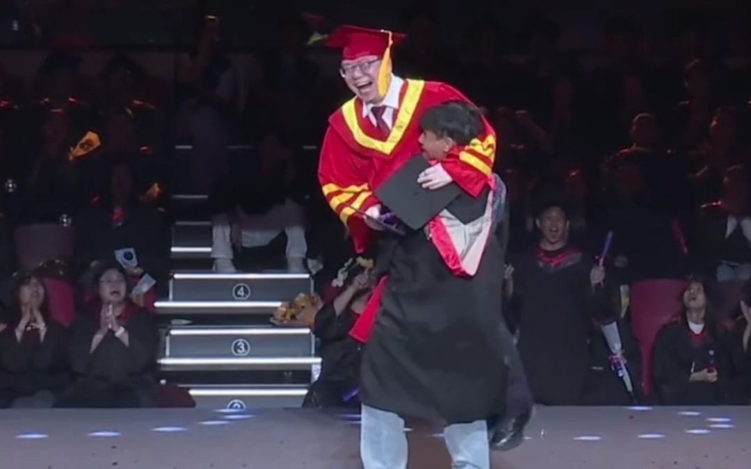 A video captured the moment last month when a graduating student lifted the university president clear off the ground and spun him around during his formal graduation ceremony. As he received his diploma in Guangdong, China, the student shook the president’s hand, then suddenly picked him up and twirled him around with a big grin […]